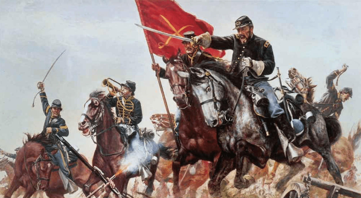 Nei decenni precedenti la Guerra Civile, i teorici militari di entrambe le sponde dell’Atlantico continuarono ad abbracciare il metodo napoleonico di condurre una battaglia offensiva. All’interno di questo schema, la cavalleria svolgeva un ruolo significativo. Secondo il tenente colonnello William J. Wood nella sua opera “Civil War Generalship: The Art of Command, una battaglia napoleonica decisiva consisteva in un’operazione ad armi combinate di fanteria, artiglieria e cavalleria7. L’artiglieria avrebbe bucato le formazioni avversarie, che sarebbero state poi seguite da un assalto di fanteria e cavalleria pesante. Lo storico militare britannico J.F.C. Fuller ha riassunto il successo della battaglia napoleonica in quattro elementi di un’operazione ben coreografata. Fuller osserva che “mentre le colonne di artiglieria avanzata costringevano il nemico a rimanere in linea”, la cavalleria veniva poi schierata facendo sì che il nemico si schierasse in un quadrato difensivo, rendendolo vulnerabile a un ulteriore assalto dell’artiglieria e della fanteria; infine, quando i quadrati del nemico venivano gettati nella confusione, una forza di cavalleria avanzava annientando i fuggitivi nemici in ritirata. Infine, la cavalleria avrebbe preso parte allo “sfruttamento” di inseguire la ritirata disorganizzata del nemico per completare la distruzione dell’avversario8.