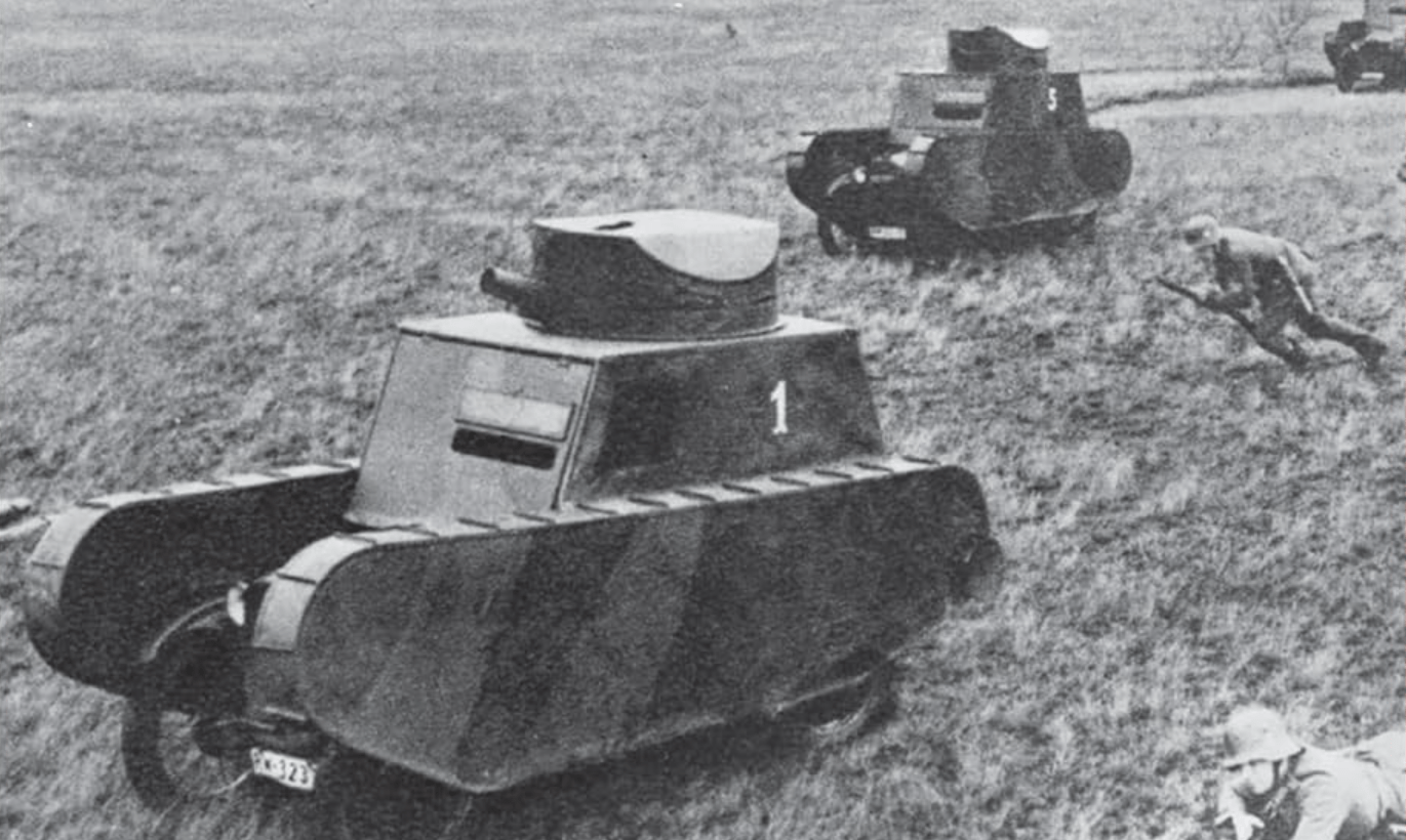 [12] Il generale Guderian parlò di tre tipi di carri armati leggeri e due tipi di carri armati medi, due per ciascuno, cioè dieci carri armati (Souvenirs d’un soldat, Plon, 1954, p. 10).