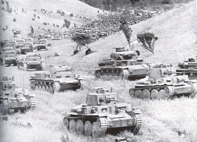 A causa della sua crescita accelerata, l’esercito tedesco stava ancora subendo grandi cambiamenti quando entrò in guerra nel settembre 1939. Anche se comprendeva un gran numero di unità in totale, la maggior parte di esse era stata creata solo di recente, soffriva di una mancanza di leadership e di addestramento, era equipaggiata in modo molto diseguale e quindi aveva un valore di combattimento molto diseguale. La “punta di diamante” del nuovo esercito tedesco, la Panzerwaffe stessa, non era del tutto immune da questa relativa eterogeneità. E molto più che nella sua superiorità numerica, nell’abbondanza del suo armamento o nella sua qualità, la sua forza principale risiedeva in ultima analisi nella sua capacità senza precedenti di coordinamento interarmato, ossia nella capacità di utilizzare diverse armi in combinazione con la massima efficacia, sia strategica che tattica, contro avversari che non avevano tale capacità.