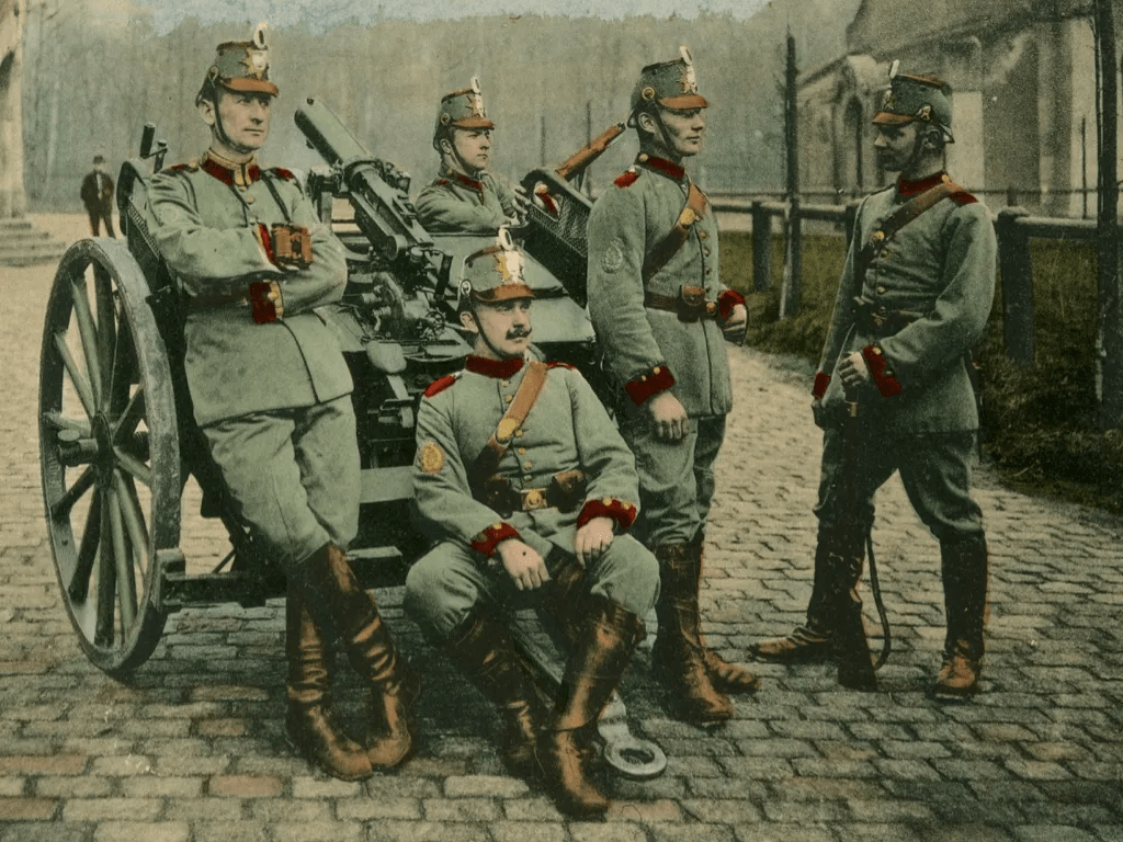 La fanteria tedesca del 1914 era, per la maggior parte, fanteria di linea. Vale a dire, era una discendente diretta delle truppe a piedi del XVIII secolo che si muovevano, sparavano e combattevano in formazioni serrate. Le nuove armi da fuoco introdotte nella seconda metà del XIX secolo avevano apportato alcuni cambiamenti nel modo in cui la fanteria di linea combatteva. Tuttavia, gli ideali di ferro, disciplina irriflessiva, fermezza sotto il fuoco, fuoco di raffica, formazioni compatte e, più importante di tutto, la carica alla baionetta auto-sacrificale, erano molto vivi in molte unità di fanteria tedesche.