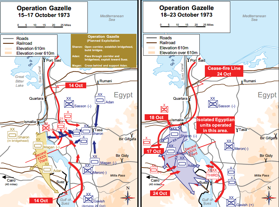 Figure 2. Operation Gazelle, 15–23 October 1973. Maps created by Army