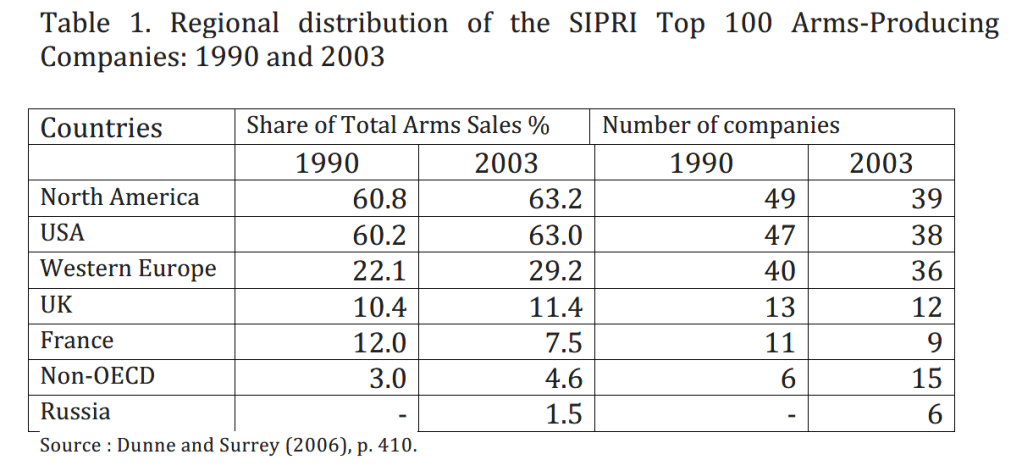 The new firm’s strategy was to sell not only military products but also commercial services. The world concentration process of armament firms is spectacular Since 1991, under the impulse of the government, the American arms industry engaged in mergers-acquisitions, leading to the emergence of four great entities: Boeing, Lockeed Martin, Northtrop Grumman and Raytheon. The size of the firms but also of the American market makes armament firms able to obtain economies of scale and greater export competitiveness than armament companies from foreign countries. However, according to Blanc (2000), the American reorganizations were not just made to reach size effects. These concentration operations are not mainly decided for military or economic reason, but for increasing financial profits for managers and shareholders.
