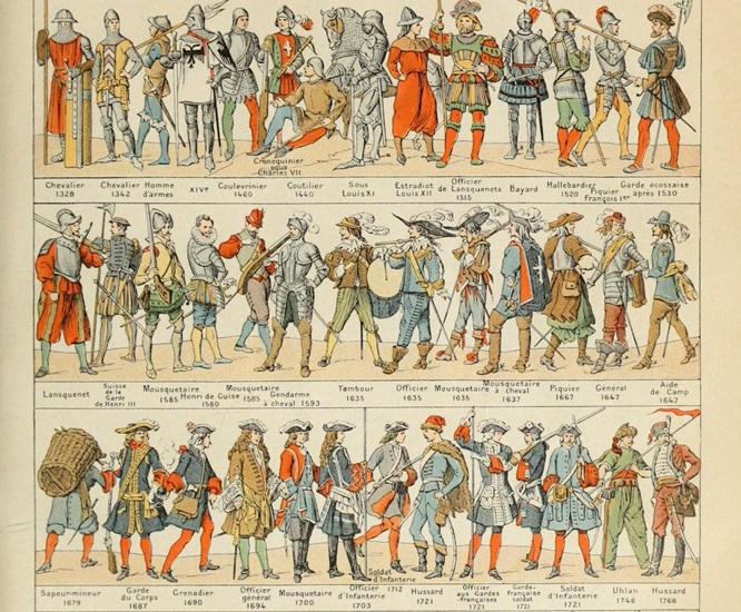 Louis XI substitue une infanterie permanente recrutée dans les pays répu-tés pour la valeur militaire de ses hommes comme en Allemagne et en Suisse, associé à un maintien du système des compagnies constituées de volontaires et d’engagés. Les troupes soldées recrutées par engagements volontaires, présen-tent pour le roi le grand avantage de n’être limité à leur égard par aucune règle du droit féodal. Ces mercenaires combattent à pied ou à cheval, et sont enrôlés en France et hors de France pour la durée d’une expédition. L’engagement mi-litaire demeure le meilleur moyen pour la noblesse de gagner honneur et gloire.