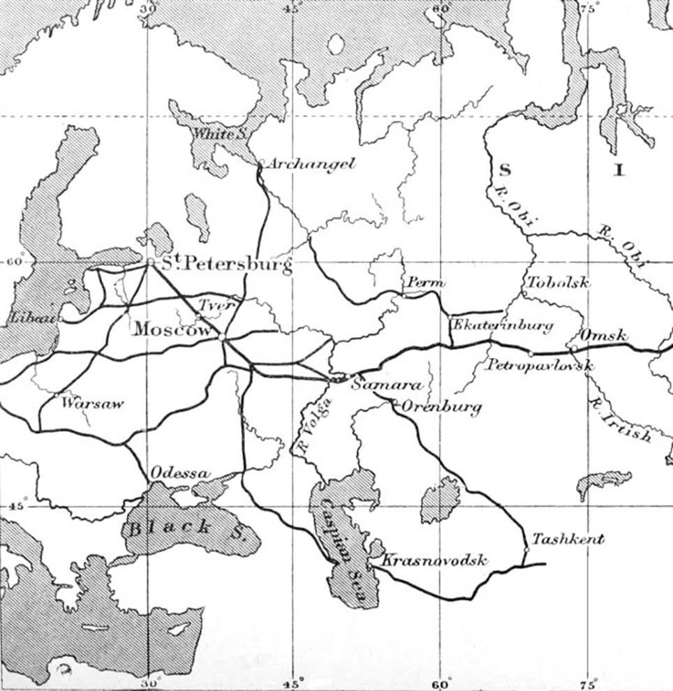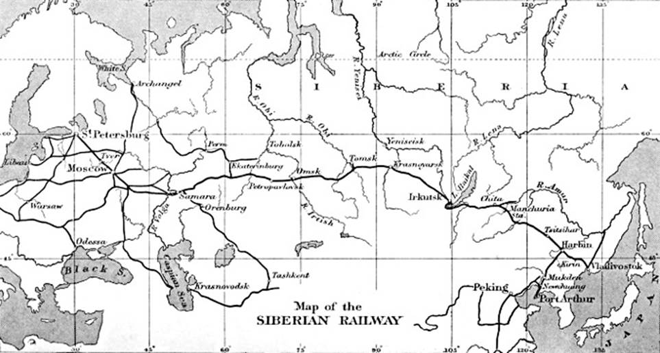Lake Baikal was the great obstacle on the Siberian Railway. The ice-breaker did not work regularly, and progress on the construction of the Circum-Baikal line was slow. Prince Khilkoff conceived and carried out the idea of laying a temporary line across the ice of the lake, and so passing the wagons over. He also proposed to dismantle the locomotives, take the parts across by horse traction, and reassemble them on the eastern side. On February 16 I received the following letter from him: