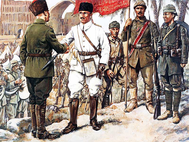 Several groups and individuals in the Ottoman society volunteered for active duty during the World War, with the major examples being the “Mevlevi” (a Sufi order founded by the followers of Mevlana Celaleddin-i Rumi in Konya) and the “Kadiri” (another Sufi order founded by Sheikh Ismail Rumi in Istanbul). In addition to the battalions formed by these Sufi orders, there were also units formed by Caucasian and Rumelian Turks (such as the “Osmancık Battalion” led by Lt. Süleyman Askeri) who took part in the battles in Mesopotamia and Palestine. Volunteers were not only Turks; there were also Arab and Bedouin volunteers who supported the campaign against the British to capture the Suez Canal.
