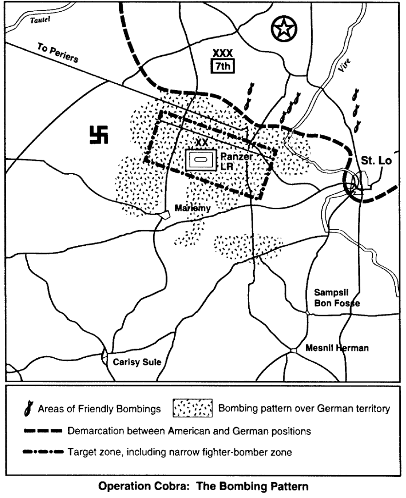 All of the above errors were incidental to the real causes of the tragic bombings–the restricted size of the bomb zone and confusion over whether the air attack would be flown perpendicular or parallel to the front lines. The Army wanted a parallel attack so that short bombs would not land in friendly territory. (Actually, this approach would not guarantee an absence of friendly casualties.)