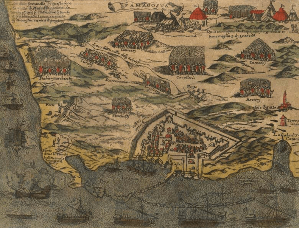 Mappa di Famagosta con l’esercito otomano schierato all’esterno (fonte: wiki)