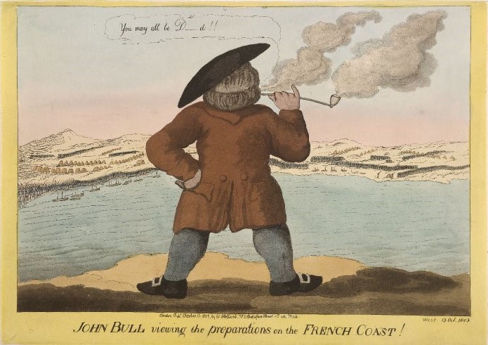 The British government led by Lord Addington, for whom the Peace of Amiens had been felt basically as a defeat, lost no time in kick-starting the war with consular France in May 1803. The Boulogne Camp was a significant reality, and throughout the British Isles, public opinion was being prepared for the very real probability of imminent invasion. National resistance was encouraged by means of patriotic publications, sometimes bombastic and hyper-confident, at other times comic and even alarmist. Such broadsheets were produced in very large quantities. Here are a few examples:
