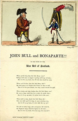 (Broadsheet bearing a song satirising Boney’s hesitating to invade, to be sung to the melody Blue Bell of Scotland (here below) [14], 13 August 1803 (Private Collection)